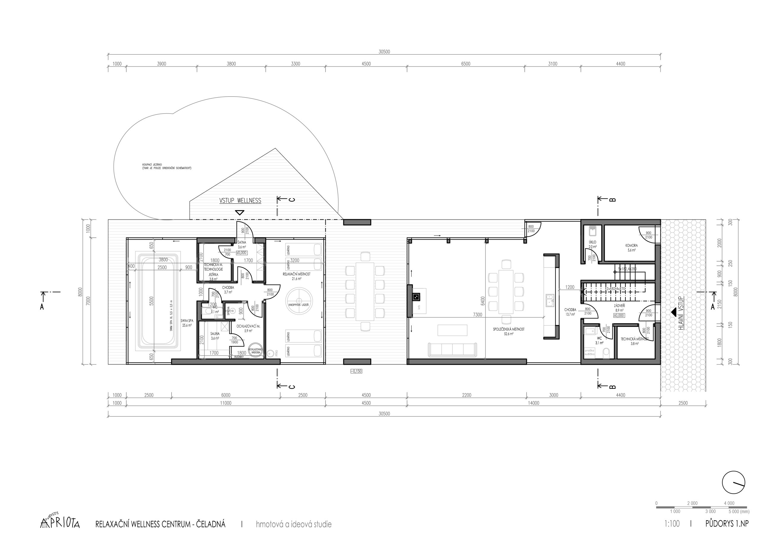 Dům byl navržen jako moderní jednopodlažní stavba s podkrovím. Na hlavní část objektu, která má sedlovou střechu, navazuje wellness se zelenou střechou, jež harmonicky doplňuje vzhled domu a propojuje ho s okolní krajinou.